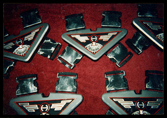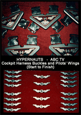 | HYPERNAUTS Spaceship fighter pilot cockpit harness buckles. Project Manager Fabricated patterns, made molds to accept existing plastic latches, made castings,and applied paint and finish to castings. Made patterns, multiple molds, imbedded tack- backs during casting. Did finish painting., |